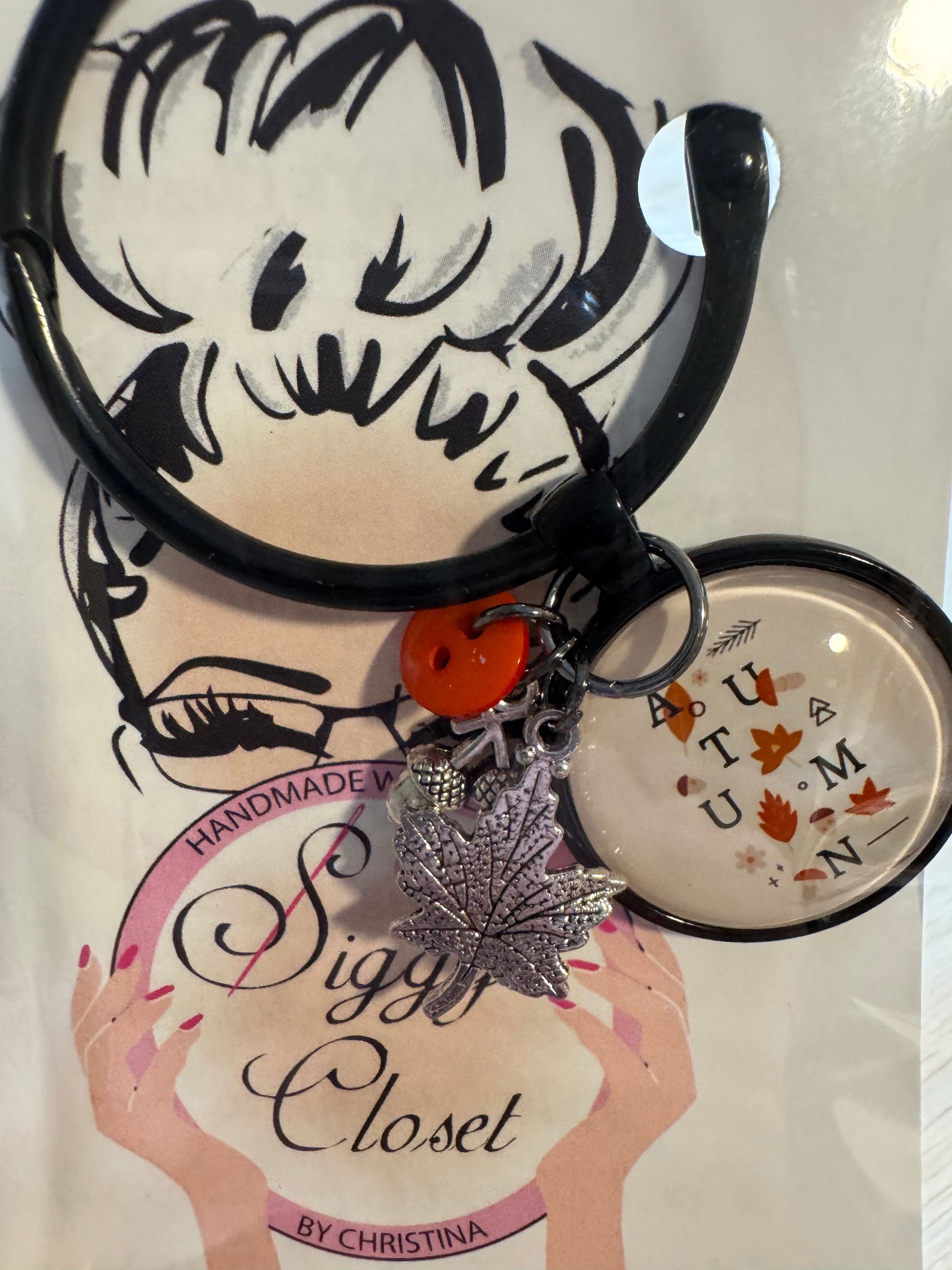 Autumn thread keeps are the perfect accessory to keep your thread organized. They are the great as a gift or to add to your own stitch collection. It is an original design by Siggy's Closet. Christina makes the perfect 1 inch cabachon with charms on a 1.5 inch ring.