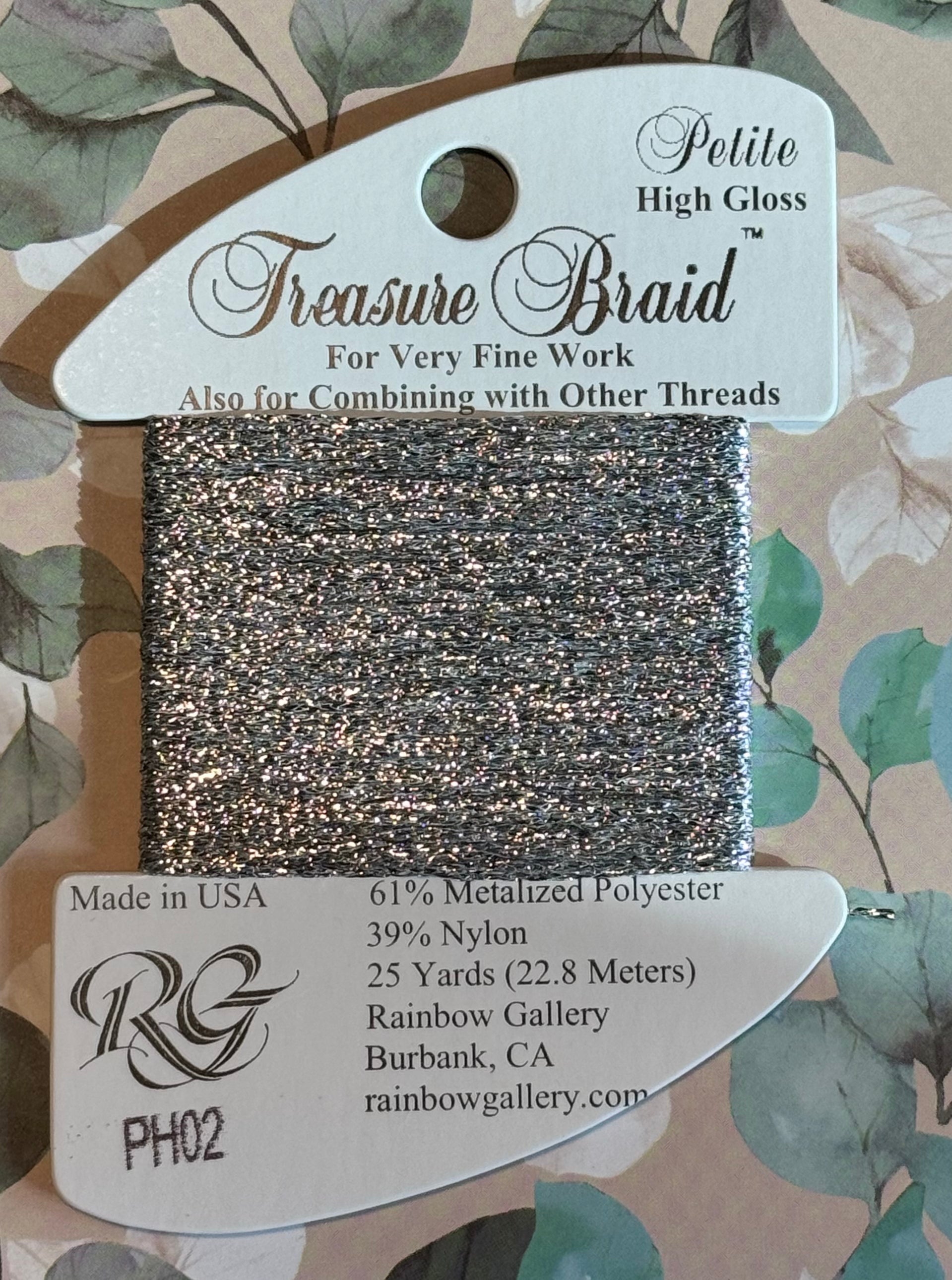 Petite Treasure Braid by Rainbow Gallery. 25 yards per card.