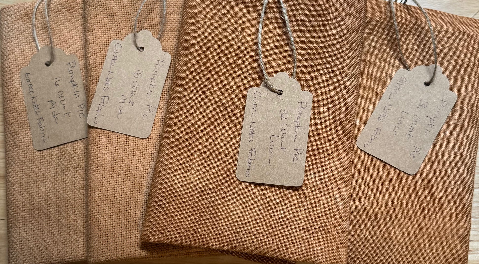 Every piece is hand dyed, and though the same formula and process is replicated with any dying process, each piece is unique. Linen and Aida are cut to a Stitcher's Quarter Yard, approximately 17" x 28". Size is approximate due to the the dye process.