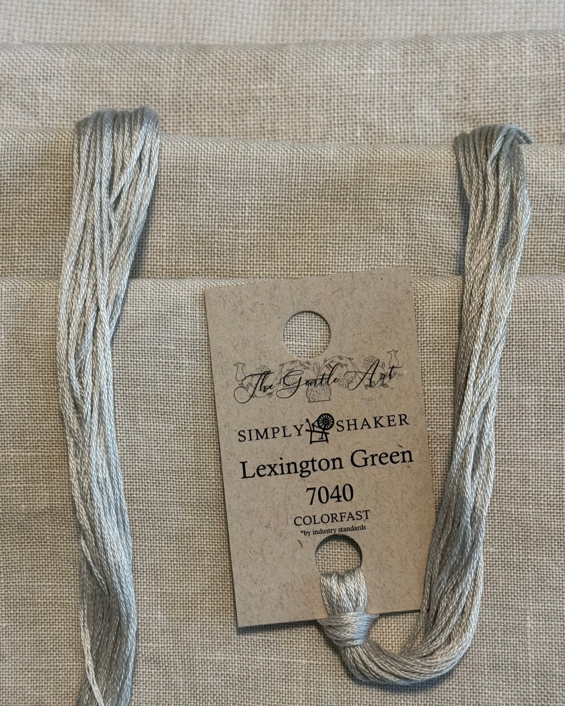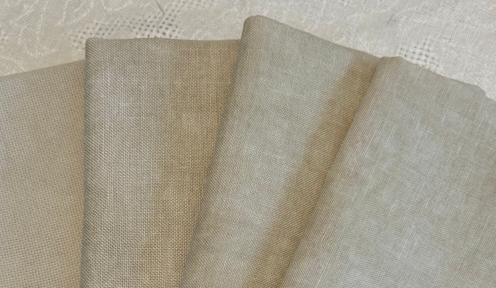 This color is a cool beige neutral. It is the perfect color to stitch almost anything on and one I keep in my personal inventory. The cool beige color pulls a little faint green in the over-dye variegated cloth. Floss colors closely resembling the linen are Lexington Green and DMC #3024.