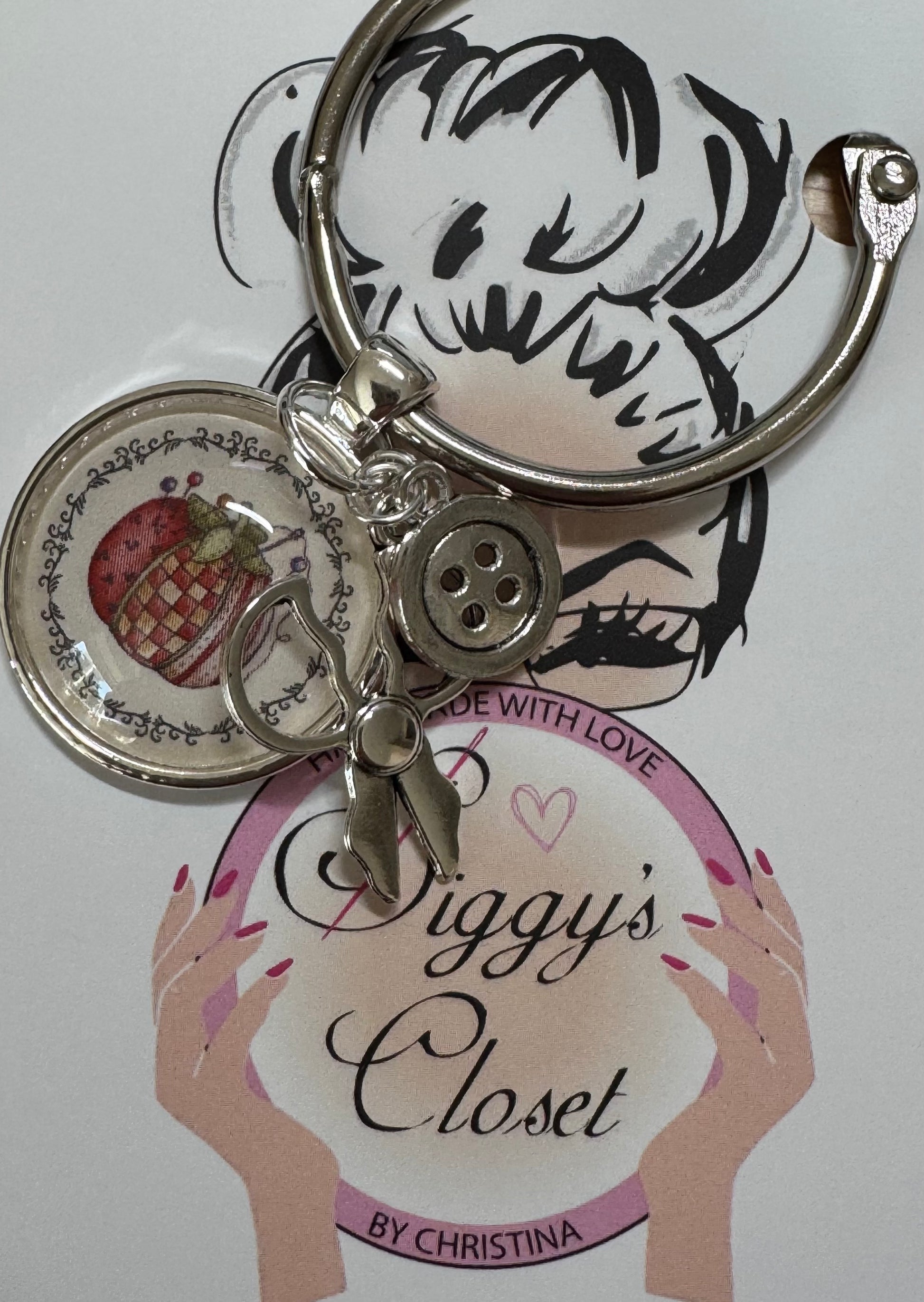 Sewing Tomato thread keeps are the perfect accessory to keep your thread organized.  They are the great as a gift or to add to your own stitch collection.   It is an original design by Siggy's Closet.  Christina makes the perfect 1 inch cabachon with charms on a 1.5 inch ring.  Comes in two colorways.